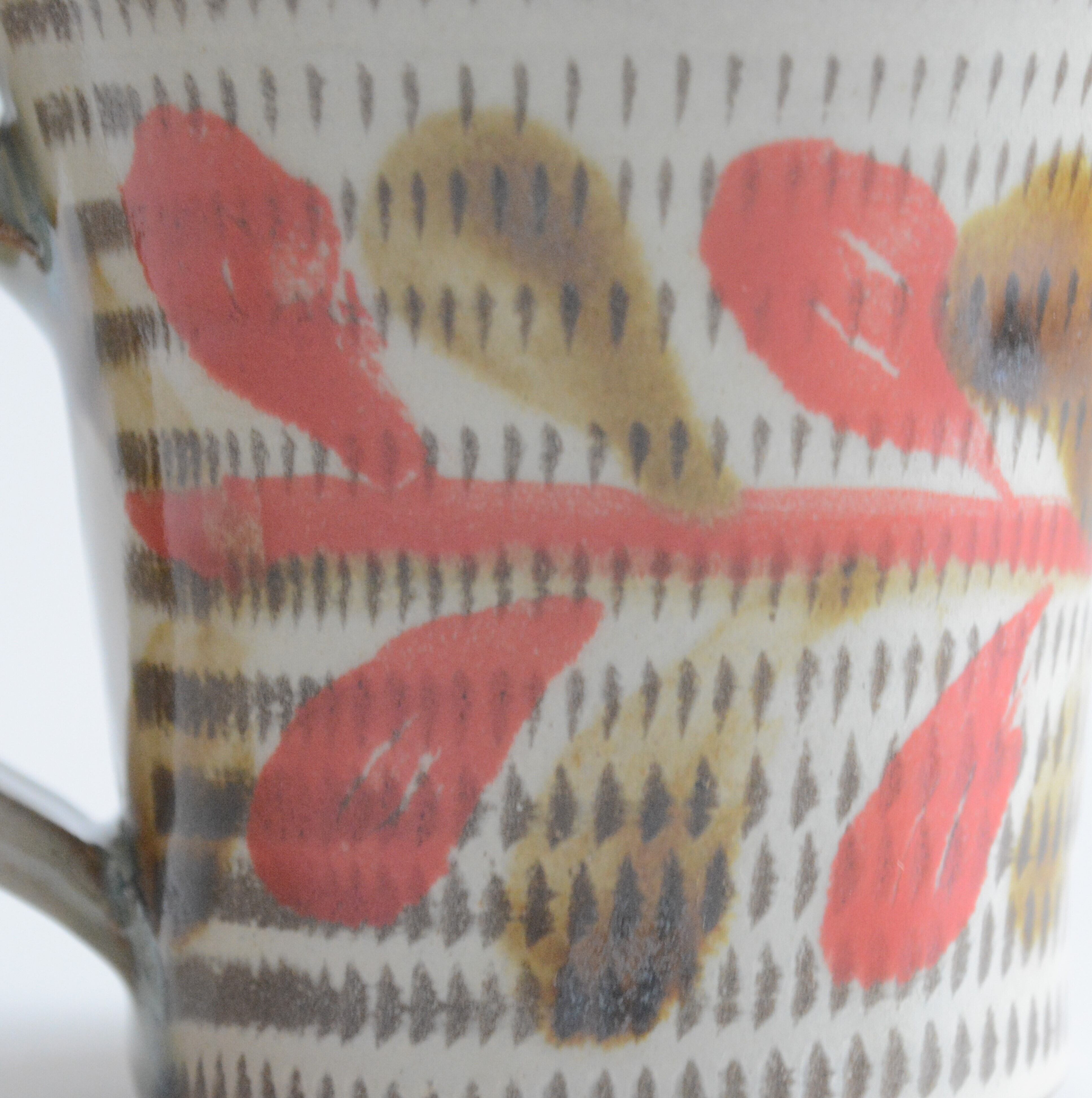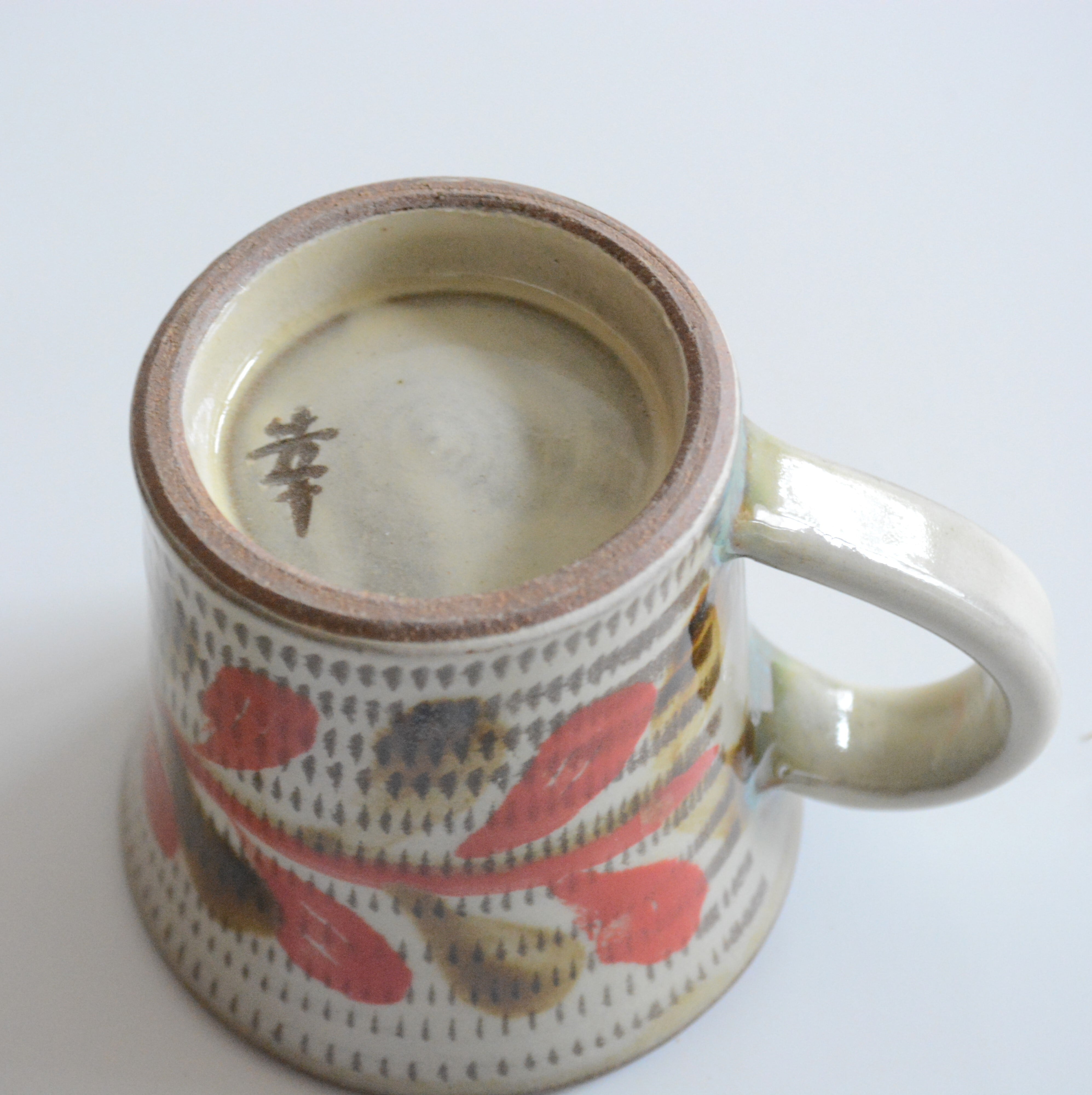 【やちむん 幸陶器】リーフ柄 赤 × 飛びカンナ マグカップ