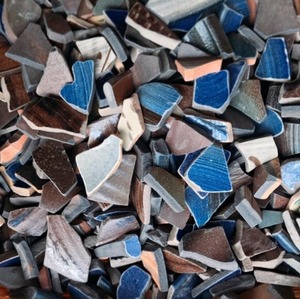 人工シー陶器とは、沖縄やちむん窯元で陶器の破片を再生し、再利用した陶器片です。