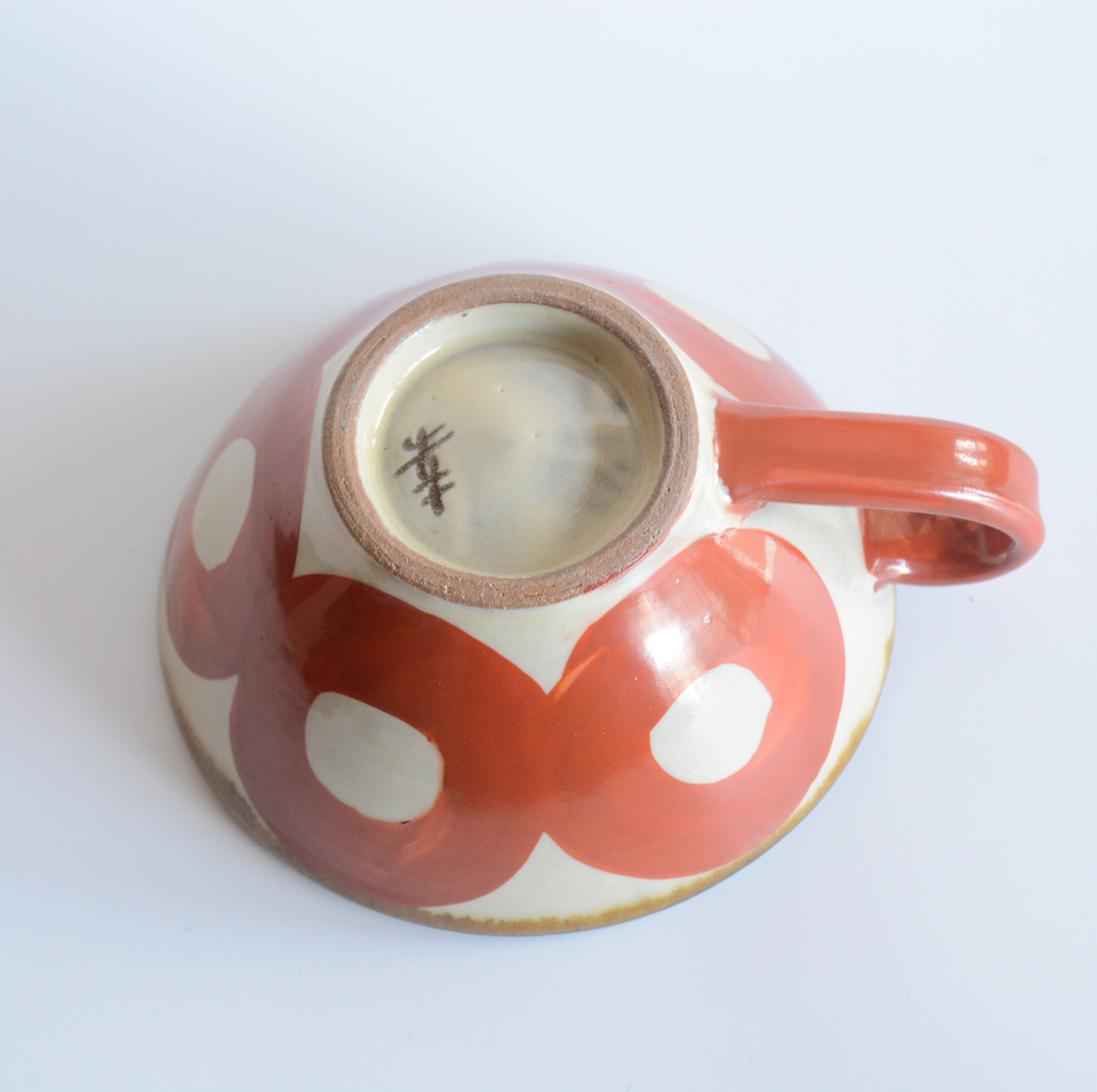 【やちむん 幸陶器】赤まる スープカップ